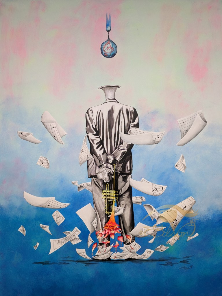 exploring numerous media, he embraced acrylics – he likes that they are rapid,