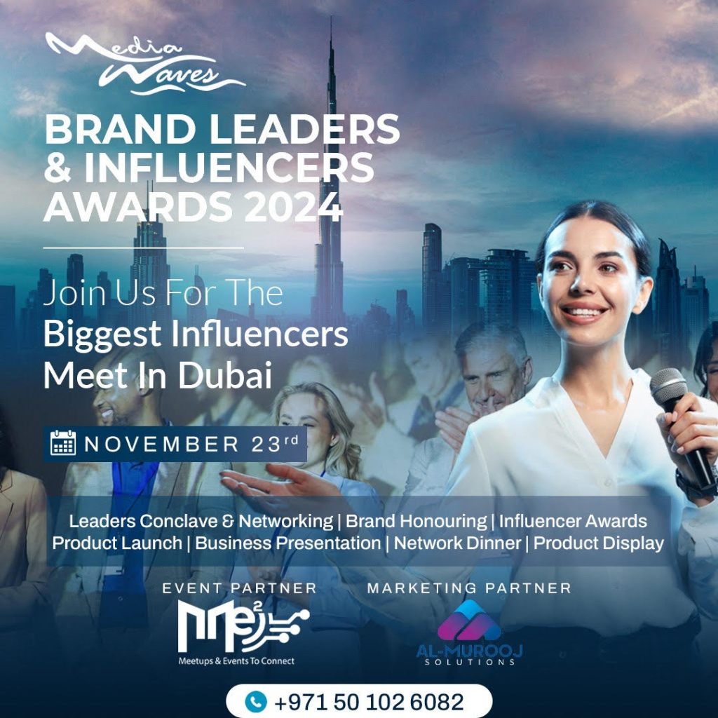 Dubai, UAE – Media Waves is proud to announce the Brand Leaders & Influencers Awards 2024, a grand celebration of excellence in leadership and innovation across various industries. The highly anticipated event will be hosted at Aloft hotel ,Al Mina on 23 rd November , setting the stage for an unforgettable evening of recognition, networking, and celebration.