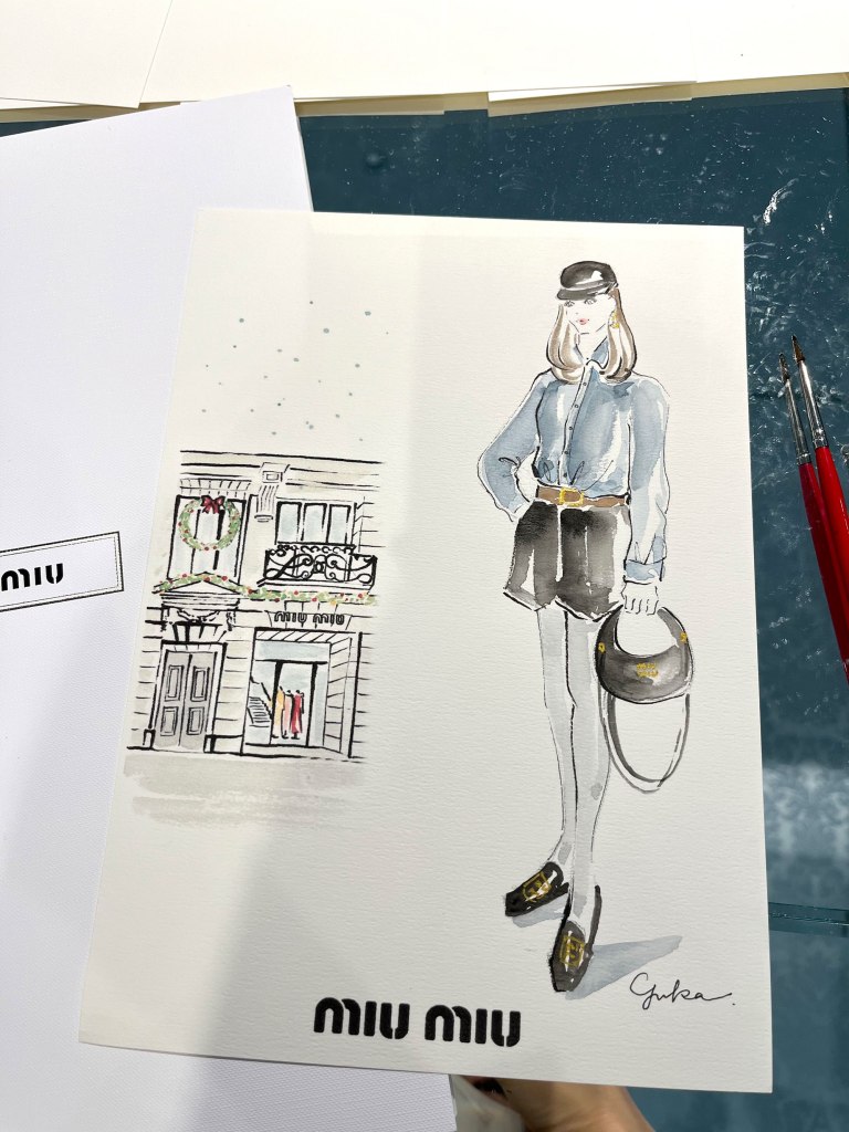 In addition to my studio work, I work as a live sketch artist, creating a personal and memorable experience for high-end brand events. I’ve had the honor of collaborating live with brands such as MIU MIU, Giorgio Armani, Brunello Cucinelli, and Nordstrom, as well as at corporate parties, press launches, brand activations, and weddings. My live illustrations elevate the event experience, creating elegant, stylish portraits that capture each guest’s unique beauty while enhancing brands’ engagement with their customers and building lasting connections.
