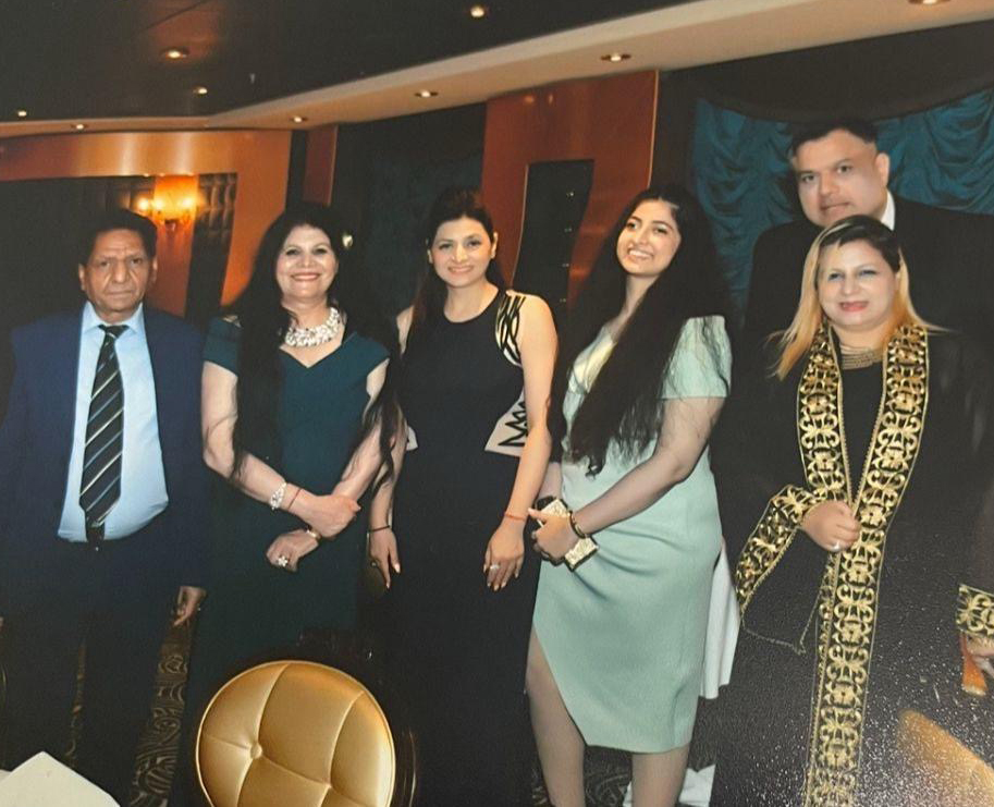 siblings Dr. Satnam & her husband Kalvin Gujral; Nita & daughter Mehar and (not in photo) Francheska Arti & husband Abhishek Kapoor